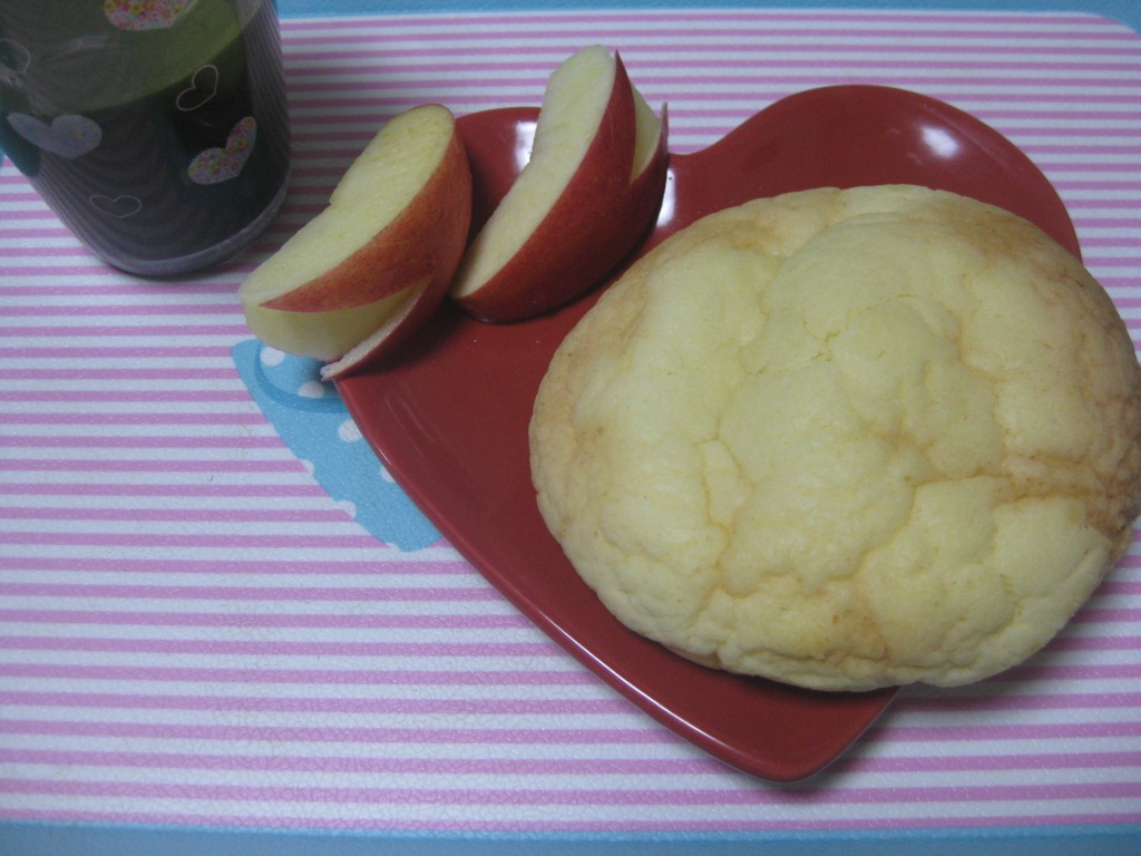 今日の朝ごはんは、チーズメロンパンです