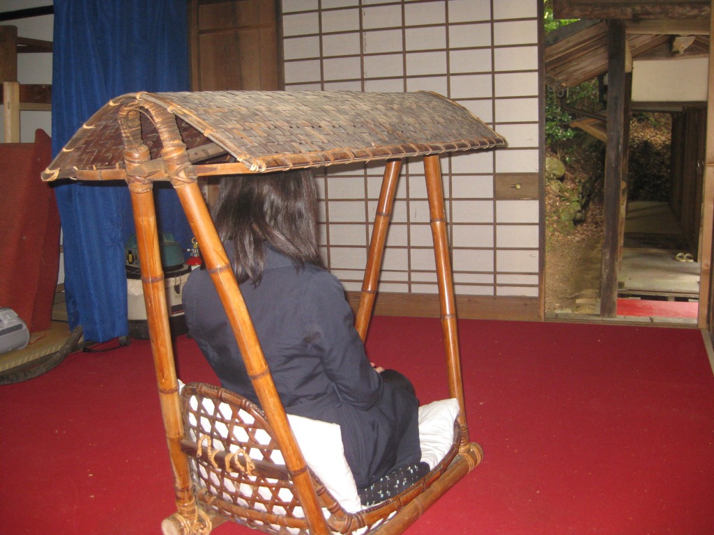 なんと!100年前の籠に乗せてもらいました