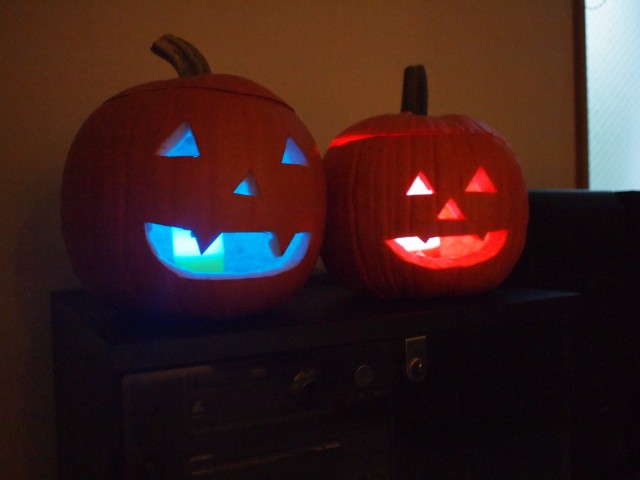 片方、光が透けてカボチャ全体がうっすら光るのは、私の作品です