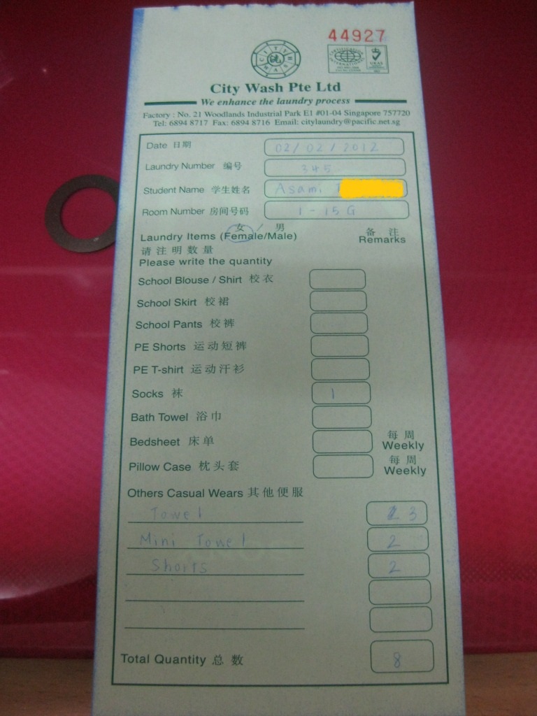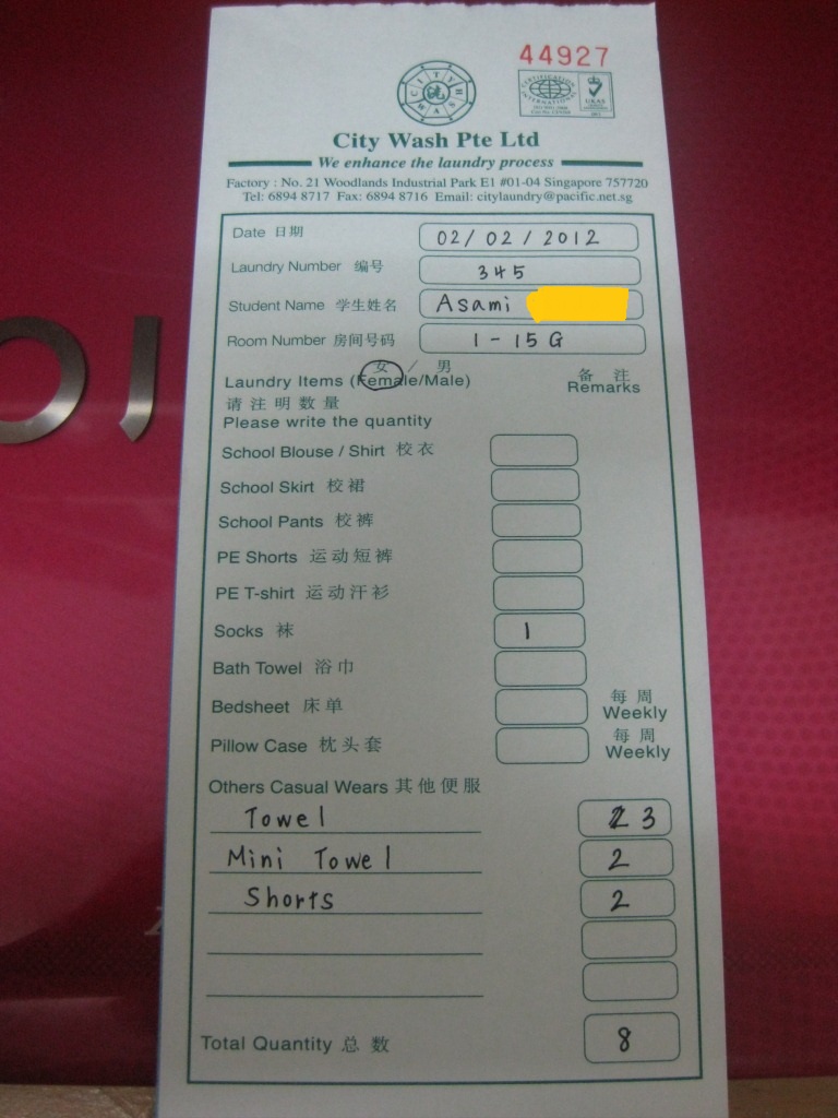 洗濯物と用紙(2枚複写になっているので1枚目)を