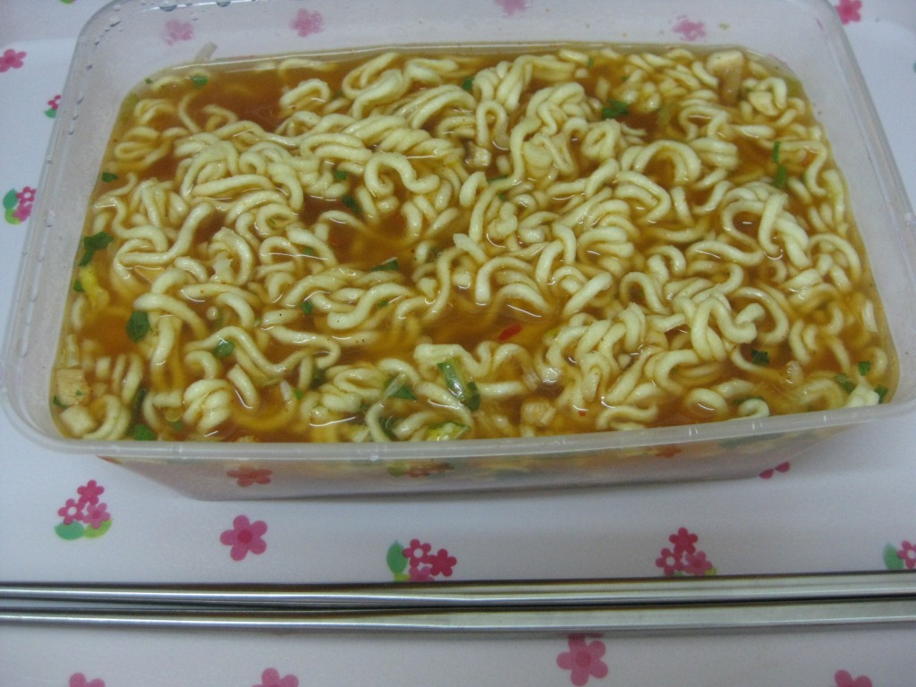 昨日いただいた辛ラミョンをランチにいただきました