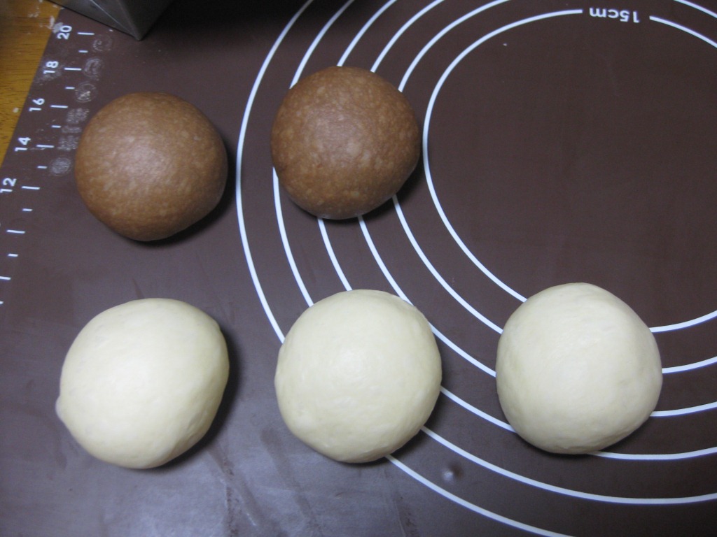 生地を捏ねた後、2:3に分け、少ない方にココアパウダーを混ぜます☆