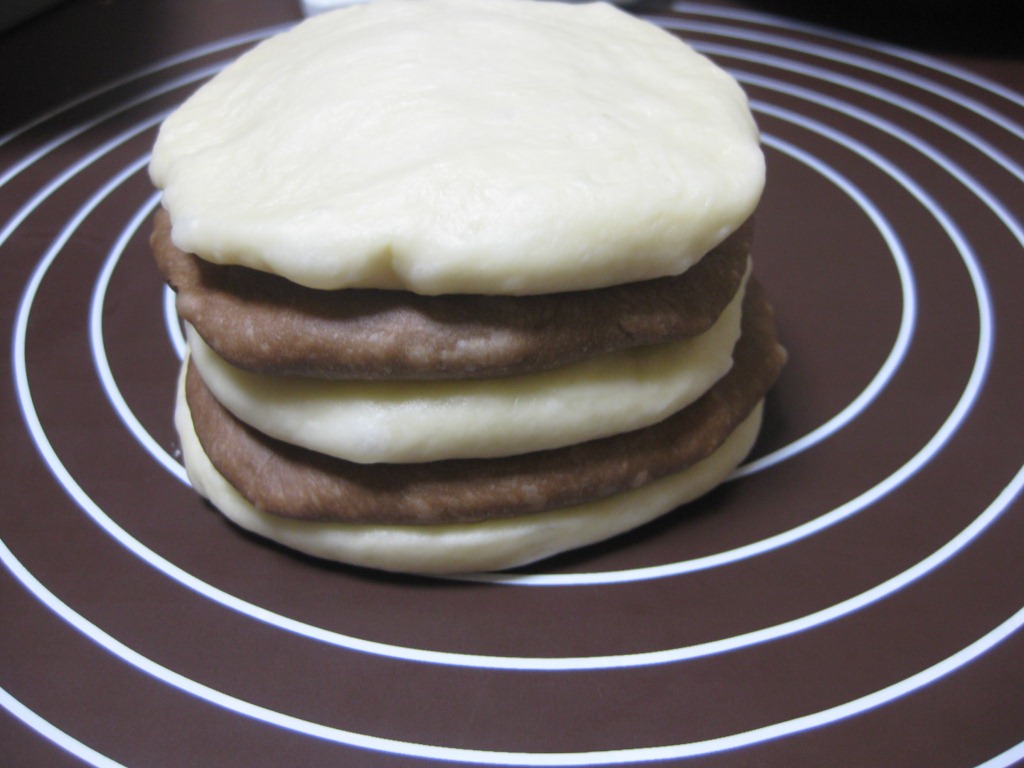 平べったく伸ばして、交互に積み上げます☆