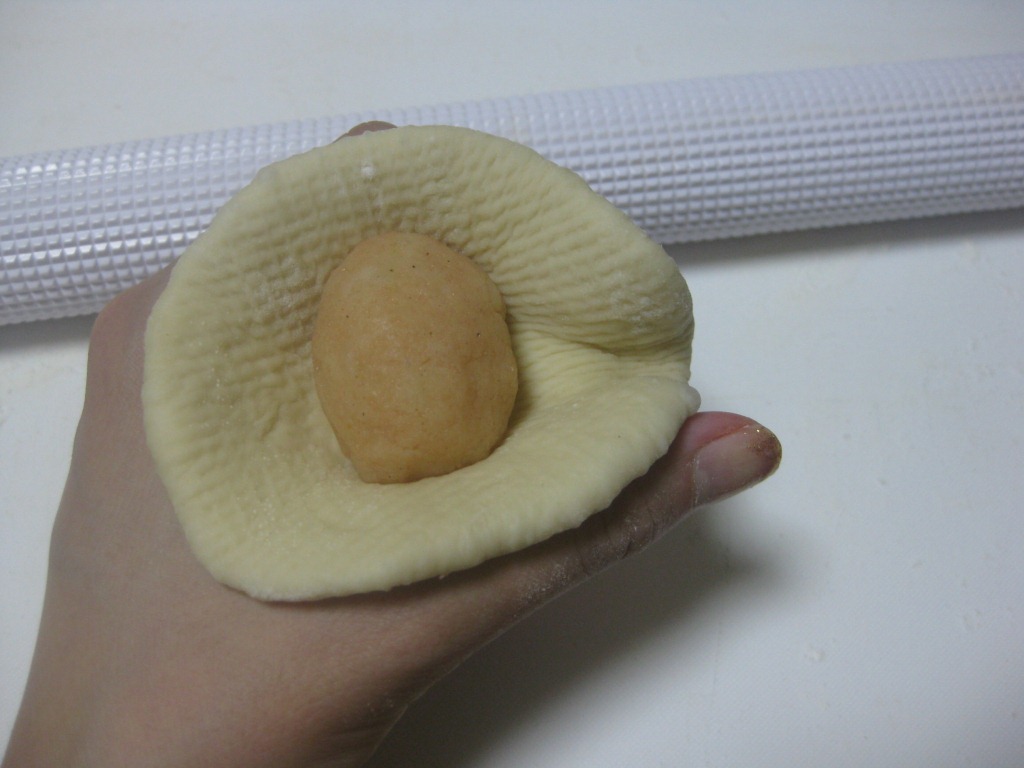 ポテトサラダを生地で包みこんで。。