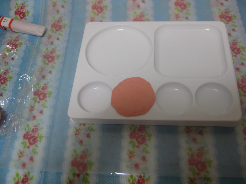樹脂粘土に絵の具を垂らし、練ります☆